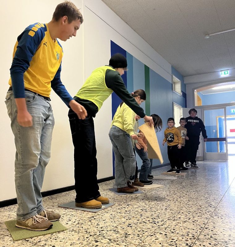So verpackten die Gruppen Eier in verschiedenen Materialien und schmissen diese von der Außentreppe auf den Schulhof in der Hoffnung, dass das Ei heile landen würde. Es wurden außerdem Begriffe pantomimisch dargestellt, Fragen zum Allgemeinwissen beantwortet und bekannte Orte innerhalb der Schule im Rahmen einer Schnitzeljagd gesucht. Auch ein Bewegungsspiel mit Teppichfliesen und ein Malwettbewerb zum Thema Juist waren Teil des Programms. Die Siegerehrung mit verschiedenen Präsenten verriet schließlich, welche Gruppe bei diesem Fest das Siegertreppchen besteigen durfte.