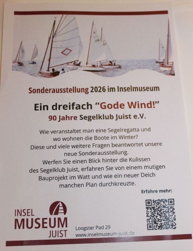 Dieses Jahr wird beim SKJ ganz im Zeichen der Feierlichkeiten zum 90jährigen Jubiläum stehen. Sie beginnen am 20. März, wenn im Inselmuseum dazu eine einjährige Sonderausstellung eröffnet wird. (Siehe hierzu auch unser Beitrag „Sonderausstellung im Inselmuseum startet mit „Tag der offenen Tür“) Zudem sind zahlreiche weitere Termine geplant, so eine Kaffeetafel am Ostermontag, eine Hafenparty im Juli, die Jubiläumsregatta am 1. August, ein Grillen im September und als einer der Höhepunkt wird der SKJ am 30. April den Maibaum im Dorf aufstellen und bewachen.