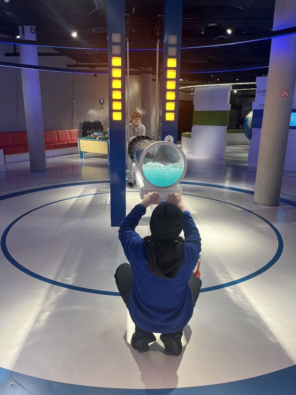 Derweil eigneten sich die Klassen 3-10 neues Wissen über verschiedene Formen von Energien im Energie Erlebnis Zentrum (EEZ) an. Die Klasse 3/4 partizipierte an dem Experiment „Wasser ist Leben“ und sammelte erste Erfahrungen im Mikroskopieren. Eine geführte Rallye durch die Ausstellung erlebten die Klassen 5-8 und die Klasse 9/10 nahm an einer Führung durch die Werkstätten von Enercon teil.