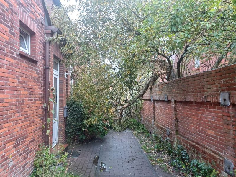 Lediglich in der Lohne, die von der Carl-Stegmann-Straße über die Wilhelmstraße bis zur Friesenstraße führt, ist auf dem Grundstück vom Appartmenthaus "Bracht" ein Baumstamm gebrochen, der Baum kippte in die Lohne, womit diese erst einmal dicht war.