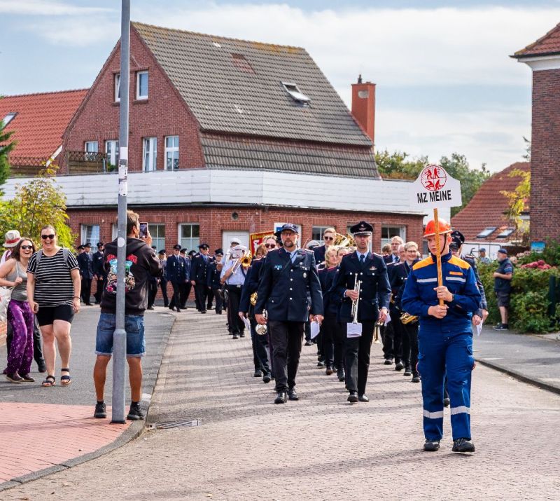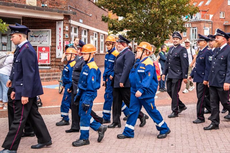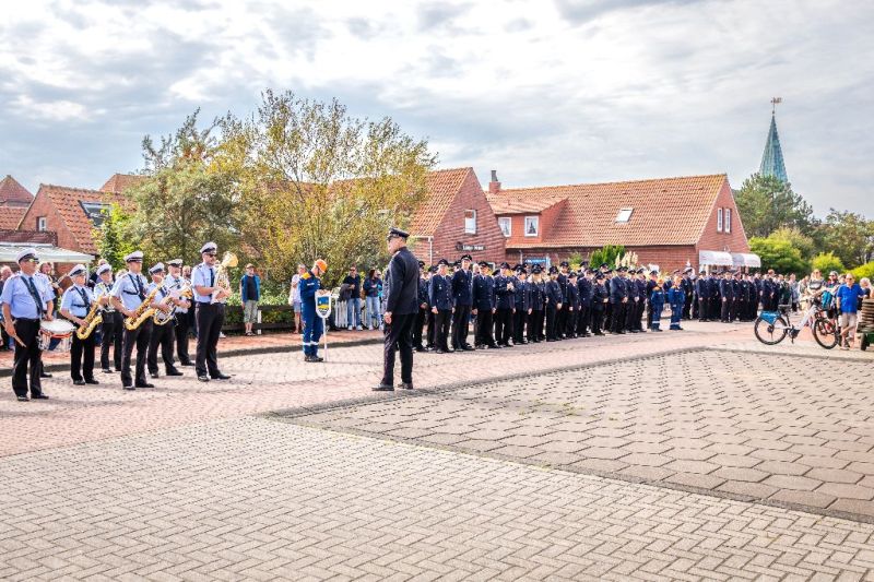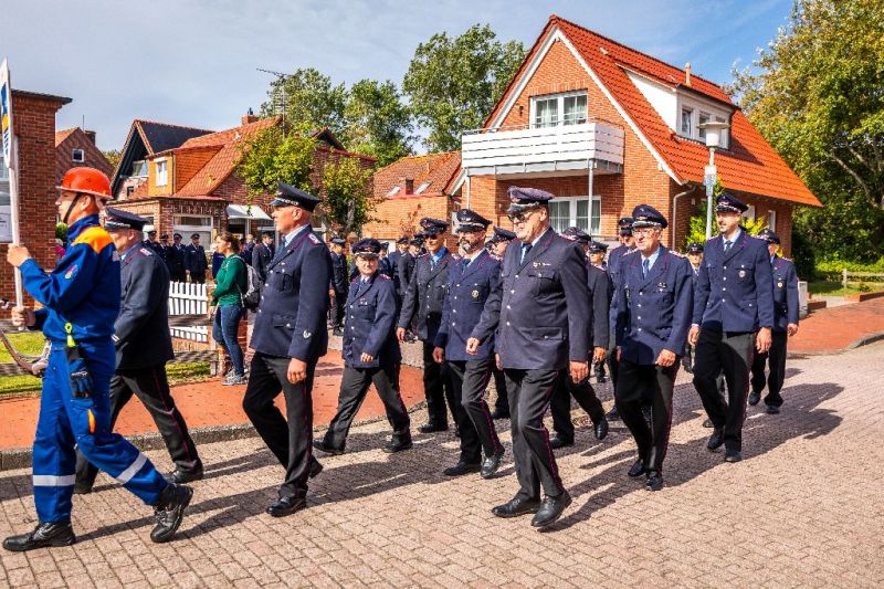 Die Freiwillige Feuerwehr Juist bekam ein neues Feuerwehrhaus und die ganze Insel feierte dieses Ereignis. Ab Samstagmittag (20. September 2025) fand bis in die Abendstunden anlässlich der Einweihung eine Riesenfeier am und im neuen Gerätehaus statt. Zuvor gab es einen Umzug durch den Ort, der am alten Standort in der Mittelstraße begann und am neuen Haus im Zwischendeichgelände endete.