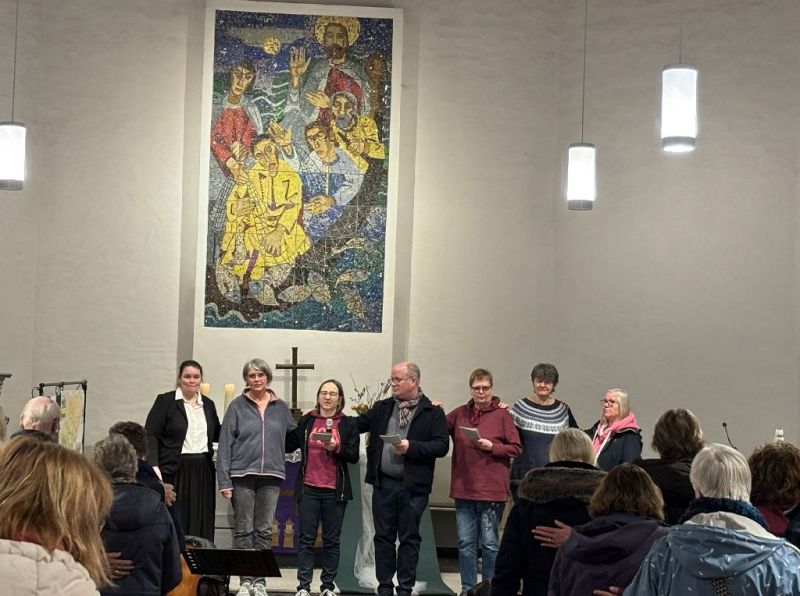Am Ende des Gottesdienstes versammelten sich alle zu einem gemeinsamen Segen. Dabei legte jeder die Hand auf die Schulter seines Nachbarn. Ein stilles Zeichen der gegenseitigen Stütze und der Gemeinschaft. Ein Moment, der spüren ließ, dass Lasten leichter werden können, wenn man sie gemeinsam trägt.