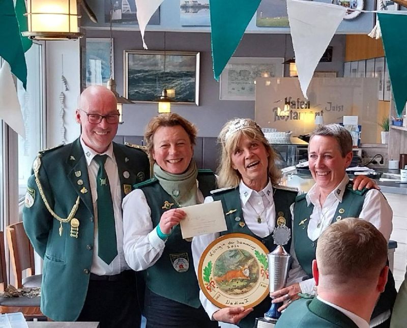 Nach dem Schießen ging es zum traditionellen Labskaussessen ins „Hafenrestraurant“, später wurden die Schützen dann noch im „Landunter“ und in der „Spelunke“ gesehen. Zwischendurch machten sie allerdings einen Abstecher in die „Küchenwerkstatt“, wo Martina Janssen-Visser, Dauervorstandsmitglied und -kassenwartin, mit ihrer Familie zum Essen war, denn sie wurde an diesem Tag 70 Jahre alt. Die Schützen brachten ihr neben einem Blumenstrauss auch ein Geburtstagsständchen.