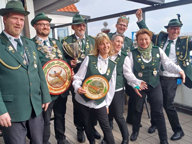 Ebenfalls zum Königshaus gehören Kronprinz Uli Löhmann und Adjutant Klaus Petzka. Schützenkönigin wurde Nadina Peters, zum Damenkönigshaus gehören zudem die 1. Hofdame Solveig Schmitz und die 2. Hofdame Julia Löhmann.