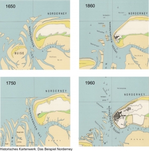 Norden/ Norderney - Etwas weltweit Einmaliges hat die Forschungsstelle Küste im NLWKN (Niedersächsischer Landesbetrieb für Wasserwirtschaft, Küsten- und Naturschutz) aus ihrem Fundus zusammengestellt und publiziert: Das historische Kartenwerk der niedersächsischen Küste. Basierend auf den Arbeiten des 1981 verstorbenen Sachgebietsleiters "Morphologie" der Forschungsstelle Küste, Hans Homeier, gibt das gut 130 Seiten starke Werk einen Überblick zur Entwicklung der Inseln und der Festlandsküste zwischen Ems und Elbe in den vergangenen Jahrhunderten mit umfangreichen Hinweisen auf Kartenquellen und Literatur.