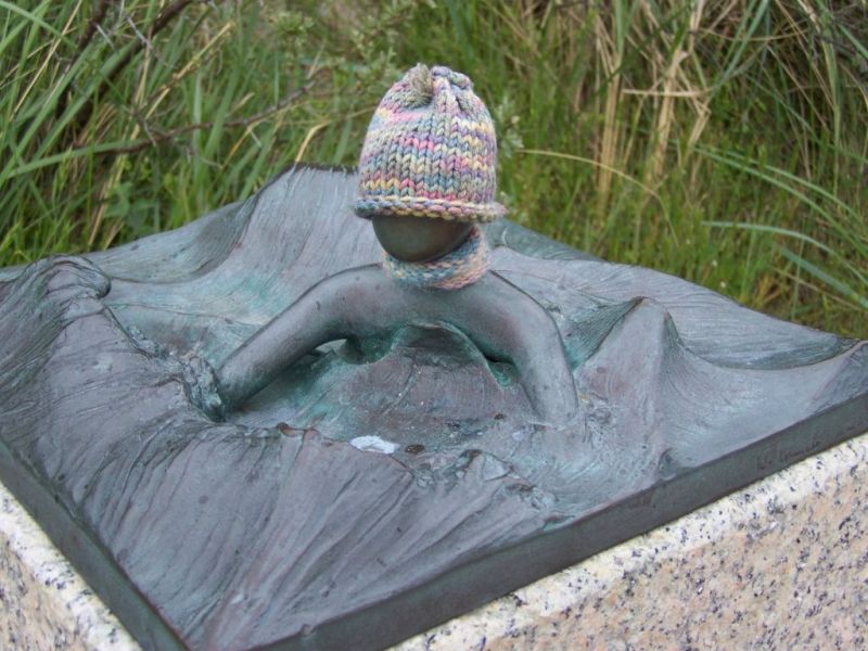 Immer wieder gibt es eifrige Mitmenschen, deren Hobby das Nähen, Häkeln, Sticken oder Stricken ist. Auf Juist sehr beliebt ist die Ausstattung der Juister Badefrau vor dem Alten Warmbad mit Bekleidung. Doch jetzt aber hat sich mal jemand die Mühe gemacht, die vier Bronzen, die am Strandaufgang Strandstraße stehen, mit wärmenden Kleidungsstücken zu versehen. Bei der derzeitigen Witterung sicher auch angebracht.