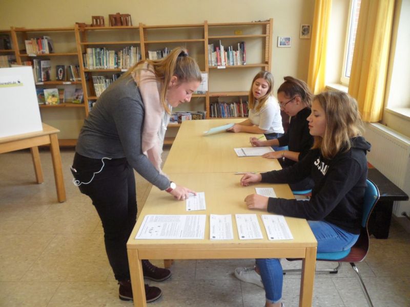 Das aus fünf Mädchen der Klasse 9 und 10 bestehende Wahlhelferteam hatte dann im Vorfeld alle Hände voll zu tun: Es mussten Wählerverzeichnisse ausgefüllt, Wahleinladungen geschrieben, der Wahlraum mit Wahlkabine und versiegelter Wahlurne vorbereitet, die Wahl durchgeführt, die Stimmen gezählt und das Wahlergebnis dann protokolliert und übermittelt werden.