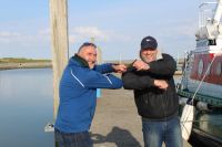 Unsere Fotos zeigen das Einlaufen in den Juister Hafen und später in den SKJ-Bootshafen. Ein weiteres Bild zeigt die Schlüsselübergabe durch Gerd Schwips (links) an Olaf Weers. Wegen der Corona-Regeln geschah die Übergabe ohne Handschlag, sondern per Ellenbogen.
