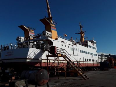 Seit dem 14. Januar lag die „Frisia II“, das größte im Juist-Verkehr tätige Schiff, auf der Werft, um die jährlichen Konservierungsarbeiten am Unterwasserschiff sowie die angefallenen Reparatur- und Instandsetzungsarbeiten durchführen zu lassen. Die Kontrollarbeiten beider Verstellpropelleranlagen, an der Bugstrahlanlage und der Ruder waren ebenfalls auf der Werftarbeitsliste vermerkt und sind erledigt worden. Nach einer Besichtigung durch den DNV-GL ist das Schiff am 26. Januar wieder nach Norddeich zurückgekehrt.