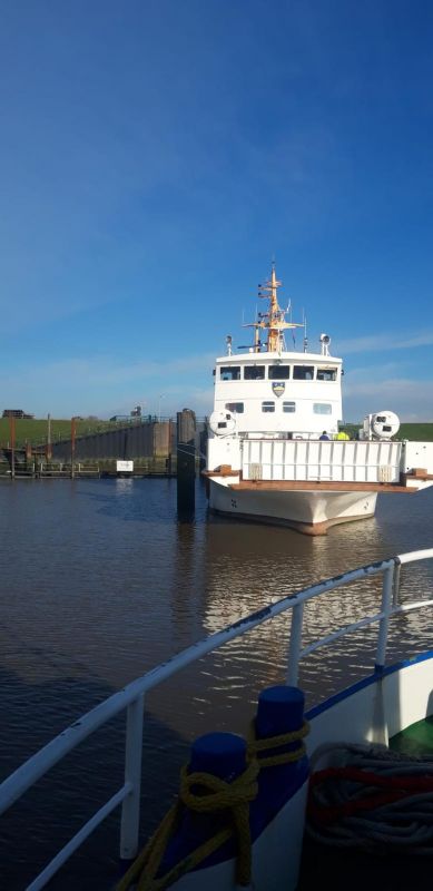 Gleich zwei Schiffe der AG Reederei Norden-Frisia traten Anfang dieser Woche die Fahrt nach Oldersum an. Zum einen die „Frisia IX“, die man dort für die Konservierungsarbeiten am Unterwasserschiff mithilfe einer sogeannnten Quer-Slipanlage an Land geholt hat.