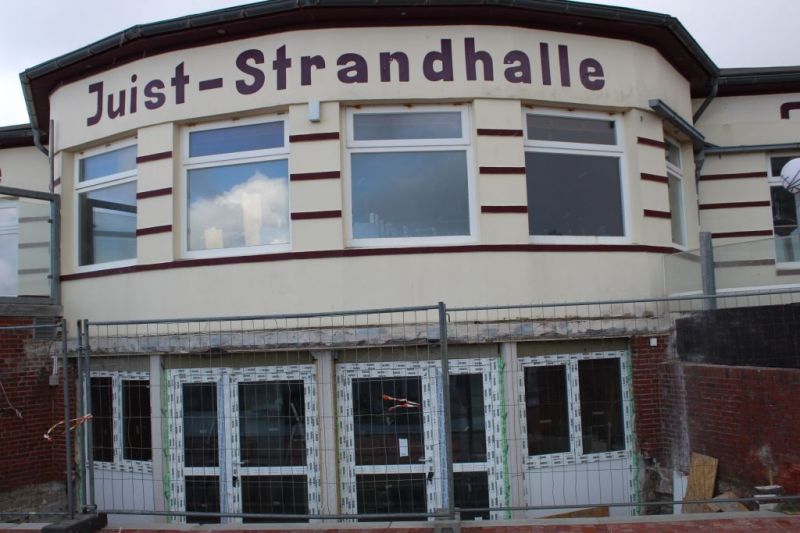 Weiter geht es am Hotel „Kurhaus“ vorbei. - Kurhaus? - Der Schriftzug „Kurhaus“ wurde jetzt vollständig entfernt und gegen „Juist Strandhotel“ ausgetauscht. (Fotos 4 und 5). Auf der Internetseite wird hingegen noch vom „Kurhaus und Strandhotel“ gesprochen. Auch im Haus finden – wie bereits berichtet – große Sanierungs- und Umbauarbeiten statt. Wenn wir weitere Infos z.B. über eine Namensänderung bekommen, werden wir darüber informieren.