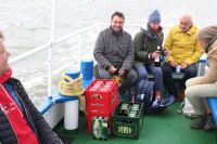 Neben Fulfs gehört der Juister Ingo Peters als Steuermann zur Stammbesatzung des Schiffes, kurzerhand wurde bei dieser Fahrt auch dessen Vater Stefan (Beppo) als Leiter eines zweiten Bierverkaufsstandes auf dem Achterdeck eingesetzt. Übrigens mit Erfolg, dem Vernehmen nach sollen mehr als zehn Kisten davon auf dieser Fahrt verbraucht worden sein.