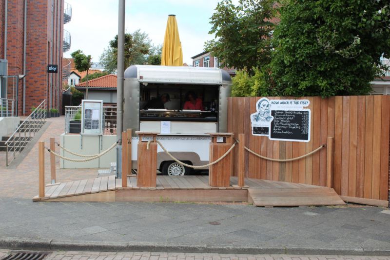 Seit einigen Wochen gibt es nun doch Fischbrötchen aus „Heini´s Kombüse“. Der Verkaufswagen der Firma Fürstenberg fand jetzt - nach den Standort-querelen im vergangenen Sommer mit Rat und Verwaltung - in der Südostecke vom Grundstück des Hotels „Atlantic“ einen Platz. Damit steht er auf einem Privatgrundstück in zentraler Lage, auch konnte Personal für den Betrieb gefunden werden.