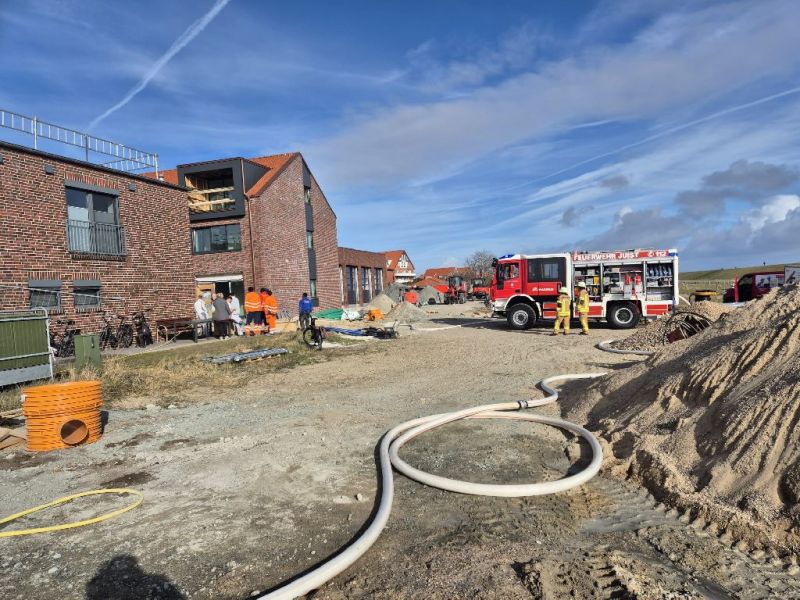 Zu einem Einsatz am eigenen Neubau wurde die Freiwillige Feuerwehr Juist am Dienstagnachmittag gerufen. Bei Abdichtungsarbeiten mit offener Flamme war Dämmmaterial in der Luftschicht durch die Hitze in Brand geraten. Die ausführenden Handwerker selbst hatten Brandgeruch wahrgenommen und sich auf die Suche nach der Ursache gemacht.