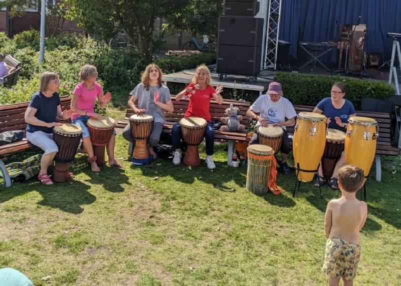 Eliseo Prida unterhielt mit seinen wunderbaren Kompositionen am Klavier die Anwesenden auf dem Kurplatz. Wieder mit dabei war die Juister Gruppe „JustDrums“, die jedes Jahr zum Auftakt der Veranstaltung trommelt. Leider in diesem Jahr ohne Gurdrun Haiden.
