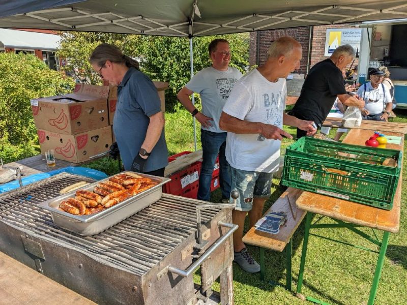 Die leckeren selbstgebackenen Kuchen und Torten sowie die schmackhaften Suppen, Pizzas und Flammkuchen lockten wieder viele Gäste und Juister auf den Kurplatz. Wie jedes Jahr bringen einige schon ihre Töpfe von zu Hause mit, um sich für die nachfolgenden Tage mit Suppe einzudecken. Auch Grillwürsten im Brötchen, Pizzas und Flammkuchen fanden reißenden Absatz. Das Highlight bei den Getränken war der Uganda Gin. Diesen bringt Dr. Okot-Opiro schon immer extra fürs Afrikafest aus Uganda mit.