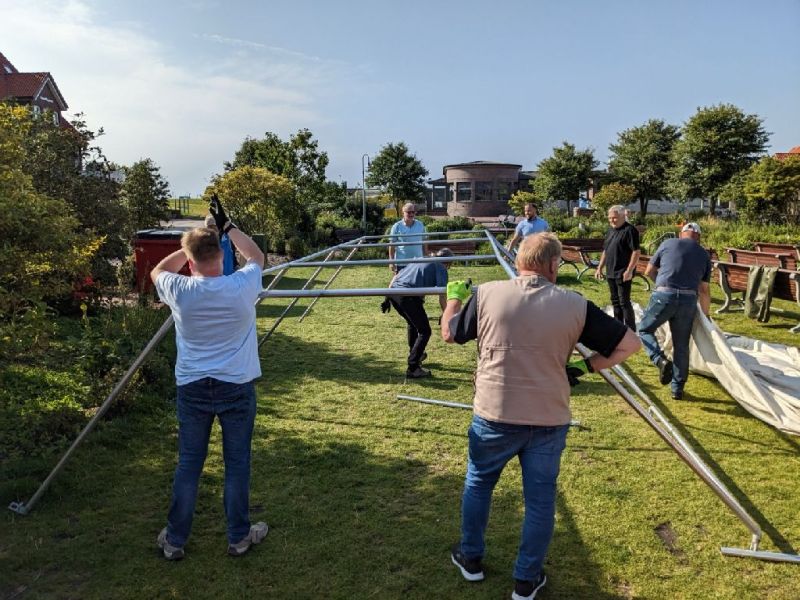 Bei schönstem Wetter und angenehmen Temperaturen lief alles rund. Das lag aber auch an den vielen freiwilligen Helfern, die sich schon früh morgens zum Aufbau der Zelte getroffen haben. Eigentlich ist es immer der gleiche Ablauf, aber hier und da muss eben auch mal improvisiert werden, „eben wie in Afrika auch“, lacht der Doktor. Er weiß wie oft man auch in Uganda den konventionellen Weg verlassen muss, um etwas Neues auszuprobieren, „sonst tritt man auch dort auf der Stelle“.