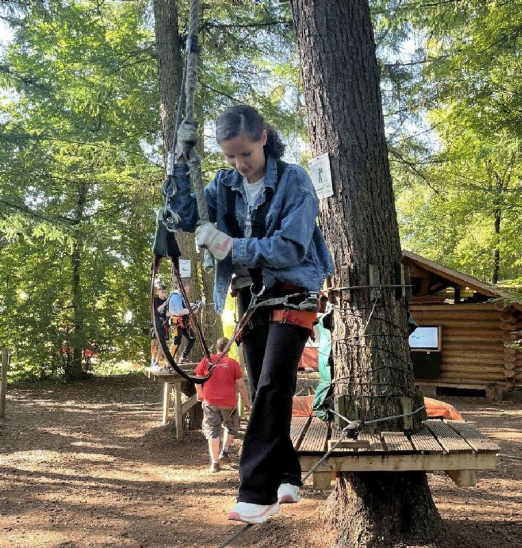 Es folgten anschließend zwei actionreiche Tage. Zum einen wurde der Tier- und Freizeitpark Thüle besucht. Hier startete der Besuch mit einer umfangreichen Führung durch die Tierwelt. Das Highlight stellte die Fütterung der Kattas dar, die den Schülern Rosinen aus der Hand aßen, bevor die Kinder weiterzogen und sich mit allen weiteren Attraktionen des Parks ausführlich beschäftigten. Zum anderen war am Tag darauf der Mut beim Überqueren verschiedener Kletterstationen im Kletterpark Nord gefragt. Der Weg dorthin führte auf dem Deich der Thülsfelder Talsperre entlang, den die Schüler und Lehrkräfte gemeinsam auf dem Rad bewältigten.