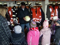 Die Vorschulkinder vom Juister Kindergarten "Schwalbennest" behandeln gerade die vier Elemente, und derzeit ist das Feuer dran. Eine gute Gelegenheit, um auch mal die Freiwillige Feuerwehr zu besichtigen. Dies fand kürzlich zusammen mit den Erzieherinnen Ela Hahn und Brigitte Dilley statt.