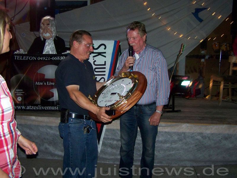 "Der Segelsport ist eine wertvolle Ergänzung der Inselstruktur und hat auch sozialpolitische Bedeutung", meinte der stellvertretenden Bürgermeister Gerd Rinderhagen in seinem Grußwort. Öfters habe er von Juister gehört, dass das Hobby Bootfahren für sie ein Grund war, weiterhin auf der Insel zu leben. Er ging auch noch mal auf den Kraftakt ein, als der neue Bootshafen entstand. Der Erfolg sei durch gemeinsames Handeln und große Hartnäckigkeit erreicht worden, insbesondere von dem damaligen SKJ-Vorsitzenden Erich Hahn und dem damaligen Bürgermeister Karl-Josef Wederhake. Rinderhagen ging auch auf das Problem der Verschlickung ein und zeigte sich hier sehr optimistisch: "Ich bin sicher, dass wir es gemeinsam in den Griff kriegen. Wir wollen alles tun, damit der Hafen an seiner jetzigen Stelle erhalten bleibt."