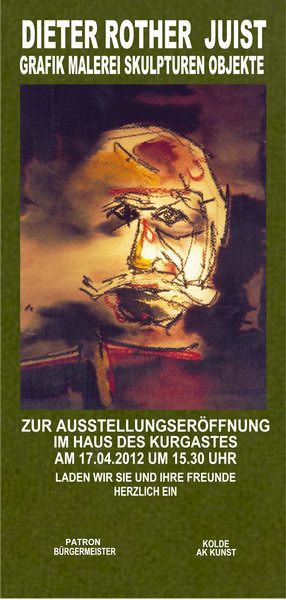 Am 17. April 2012, um 15.30 Uhr, wird im Haus des Kurgastes eine neue Auststellung eröffnet. Gezeigt werden Werke des Juisters Dieter Rother. 1943 auf Juist geboren und aufgewachsen, nach Studium in Darmstadt und Oldenburg, seit 1967 selbständiger Architekt auf Juist. In den letzten Jahren verlagerte sich die Arbeit mehr auf die darstellende Kunst, wie Bilder, Objekte und Bronzeskulpturen, welche vom Ursprung meistens aus Fundstücken bestehen.