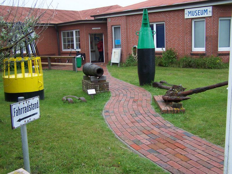 Das Juister Küstenmuseum erhielt in diesem Frühjahr eine neue Zuwegung. Der bisherige gerade Weg wurde entfernt, der neue läuft jetzt in einer Schlangenlinie durch die Exponate vor dem Gebäude. Hier befinden sich zwei Fahrwassertonnen, eine alte Kanone und ein Stockanker von einem Segler, der vor der Insel strandete.