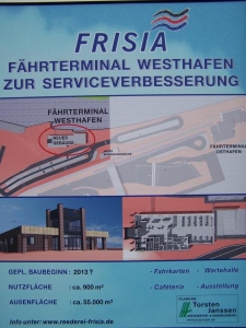 Unser Foto zeigt einen Plan, der in Norddeich bei der Juist-Abfertigung hängt. So stellt sich der Berumburer Architekt Torsten Janssen das neue Abfertigungsgebäude vor, welches nur Sinn macht, wenn der Juistverkehr an der "Brücke 1" auf der Westseite der Mole bleibt.