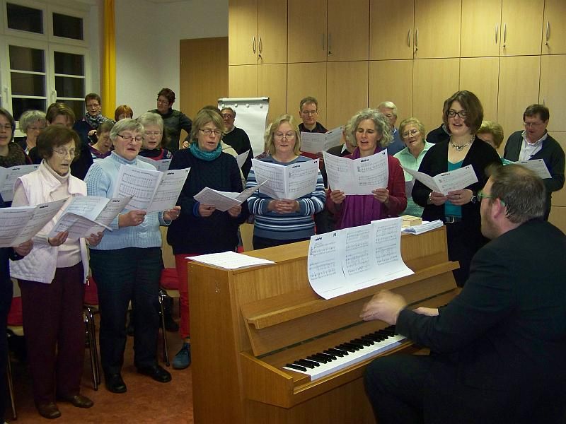 Unser Foto entstand während der Chorproben im Pfarrhaus mit dem letzten der fünf Bewerber/innen.