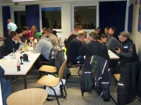 Wie es alte Handwerkertradition ist, wurde natürlich zuvor der Richtkranz auf dem Dachgiebel aufgesetzt. Den zünftigen Richtspruch hielt Zimmerermeister Uwe Felgmer von der Firma K.H. Suhr Holzbau aus Oldenburg, welche für das Aufstellen des Daches verantwortlich zeichnete. Der Zimmerer wünschte dem Gebäude und dem Bauherrn alles Gute, selbstverständlich wurde nach dem dazugehörigen Korn auch das Schnapsglas geworfen, damit es Glück bringe.