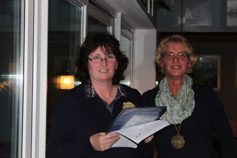 Hier waren es dann insgesamt 24 Boßlerinnen. Nach dem leckeren Essen wurde die Auswertung des Hammerseepokals bekannt gegeben. Den dritten Platz belegte Insa Lang mit 576m, den zweiten Platz mit 609m erreichte Heike Habbinga, die diesjährige Siegerin war Steffi Großhans mit 654m, ebenso hatte sie mit ihren Wurf von 87m die Medaille für den Tagesweitwurf gewonnen. Doch es gab zum Saisonabschluss noch mehr zu verteilen. Die Medaillen für den Vereinsmeister erhalten diejenige, die die höchste Meterzahl aller geworfenen Pokale der Saison erzielt haben. Dieses hatte mit insgesamt 2782m Heike Habbinga. Der Harm-Endelmann-Pokal für den weitesten Wurf in der Pokalsaison wurde an Katja Bracht überreicht, sie schaffte es beim TSV Pokal 133m zu werfen. Außerdem gab es noch eine Medaillen für die aktivste Boßlerin zu vergeben, da in dieser Saison Gudrun Haiden und Silke Endelmann an 13 Samstagen beim Boßeln dabei waren, mussten sie sich erst einmal die Medaille teilen. Die zweite Medaille wird selbstverständlich so schnell wie möglich nachgereicht.