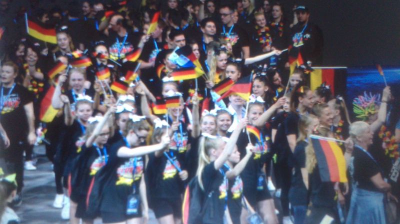 Sonntag stand im Zeichen des Wettkampfes. Haare flechten, schminken, fertig machen und dann ging es los, mit Teamfoto, Warm Up, Run Trough. Letzteres ist eine Art Probe auf Musik, wo ein Technikjuror schaut, ob alles regelkonform ist.