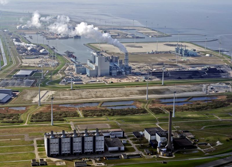Auf dem Foto erkennt man im Vordergrund das in den 70er Jahren gebaute, aktive Gaskraftwerk, dahinter das Steinkohle - Kraftwerk von RWEpowerAG/Essent, das neue unbenutzte Gaskraftwerk von Nuon rechts dahinter die freie Fläche für das Flüssiggas-Terminal. Diese Planungen sehen eine Vertiefung der Außenems vor, von jetzt zehn Metern auf erst einmal 16 bis 21 Meter, um den großen Schiffen die ungehinderte Zufahrt zum Hafen zu ermöglichen.