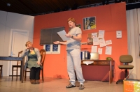 Letzter Spieler im Bunde war Andreas Arneke. Er wirkte schon in unzähligen Stücken mit, leitete die Gruppe auch ein paar Jahre, und nach einer Auszeit meldete er sich nun zurück. Zwar wirkt er nur die letzten zehn Minuten des Schlussaktes mit, doch der Part des trockenen Versicherungsangestellten, den Ivonne für den Collierhehler hält, passte voll und ganz zu ihm.