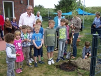 Anschließend wurde gemeinsam mit den Kindern ein junger Apfelbaum hinter dem Haus gepflanzt, bevor dann der Tag der offenen Tür begann. Interessierte konnten hier die Räumlichkeiten besichtigen, es gab Kaffee, Kuchen und Grillwurst und für die Kinder war eine Hüpfburg und andere Spielmöglichkeiten aufgestellt worden.