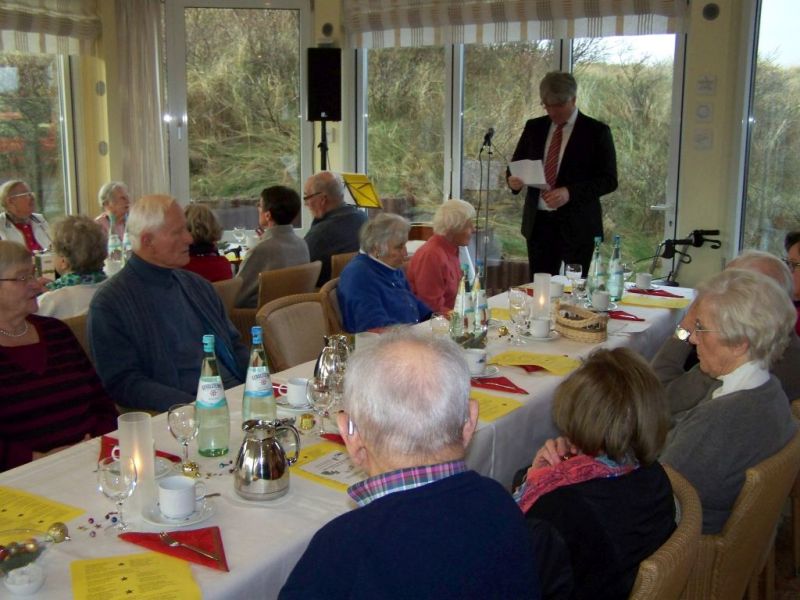 Auch in diesem Jahr lud der Juister Ortsverein des DRK, die evangelische und die katholische Kirchengemeinde sowie die Inselgemeinde Juist alle Seniorinnen und Senioren zu einer vorweihnachtlichen Kaffee- und Teetafel ein. Rund vierzig ältere Insulaner/innen kamen dazu im Hotel „Juister Hof“ zusammen, wo es neben Kaffee und Tee auch ein großes Angebot an gespendete Kuchen gab.