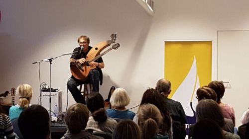 Seine beeindruckenden Instrumentalstücke lockerte der sympathische Musiker mit netten Anekdoten und Songs auf, die er mit beseelter Stimme vortrug. Das dankbare Publikum honorierte seinen Auftritt mit großem Applaus und bekam als Belohnung viele Zugaben.