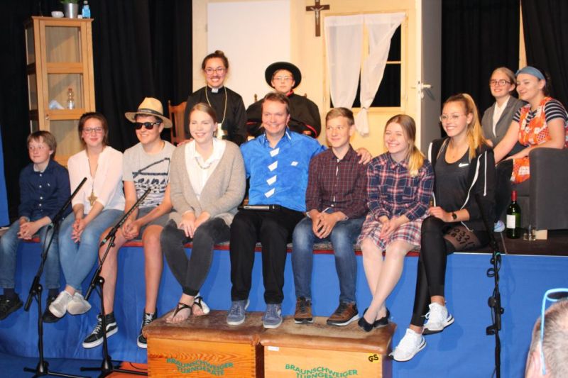 Am Sonntagabend fand die Premiere des diesjährigen Stückes „Dem Himmel sei Dank“ von Bernd Gombold in der fast voll besetzten Turnhalle statt. Die elf jungen Spielerinnen und Spieler lieferten allesamt eine großartige Leistung ab, die kurzweilige Komödie machte den Zuschauern sehr viel Freude. Die Leitung der Gruppe oblag auch in diesem Jahr wieder bei Gerrit Schlauwitz.