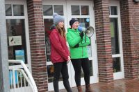 Daher stand auf dem Plakat, das vorweg getragen wurde, auch das Motto „Friday for Future – weil wir auf einer Insel leben“. Nachdem vor dem Nationalparkhaus Schülerinnen erklärten, was ihre Anliegen sind, ging ein Marsch durch das Dorf, wegen der Pferde hatten Bauhof und Ordnungsamt für entsprechende Straßenabsperrungen gesorgt. Recht lautstark und immer wieder mit Pausen, wo man z. B. gegen die Kohle in die Knie ging, kam man schließlich beim Rathaus an. Da der Bürgermeister auf dem Festland war, sprach Thomas Vodde, Marketingleiter und zugleich Umweltbeauftragter der Gemeinde, zu den Jugendlichen. Die Verantwortlichen bei den Inselgemeinden würden die Forderungen der jungen Generation mit unterstützen, denn gerade die Inseln seien ohne intakte Umwelt nicht lebenswert. Anschließend malten die Schüler*innen mit Straßenkreide ein Bild vor das Rathaus, es gab eine kleine Blume für Vodde, die an die Belange für eine gesunde Umwelt erinnern soll, und weitere Blumen als Dank gab es für Ingo Hupens vom Ordnungsamt und Inselpolizistin Tanja Krüger, die die Veranstaltung begleitet hatten.