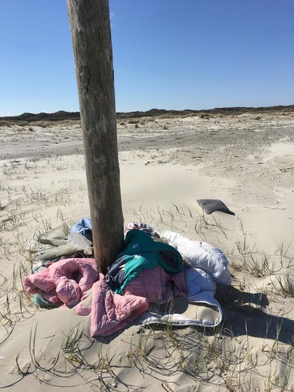 Eine Juisterin, die heute das zwar kalte, aber ansonsten schöne Wetter nutzte, um am Flugplatz an den Strand zu gehen und Richtung Kalfamer zu laufen, hat uns diese Bilder geschickt. War es anfänglich viel Plastikmüll, kommen nun viele Ladungsreste in Form von Kissen und vor allem Jacken an.