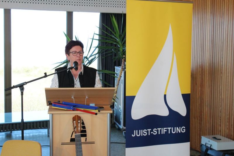 Präsentiert wurde das Konzert von der Juist-Stiftung, denn der Auftritt sollte zugleich auch ein Dank an die Bürgerstiftung sein, da diese die Anschaffung von Instrumenten und Notenständern finanziell unterstützt hatte. Inka Extra, Vorstandsvorsitzende der Juist-Stiftung, hielt daher auch die Eröffnungsansprache. Gerne habe die Stiftung die Musiker*innen unterstützt, denn auch der Bereich Kultur und Musik gehöre mit zu den Aufgabenbereichen, den sich die Stiftung seinerzeit bei der Gründung auferlegt hatte.