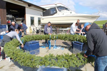 Bei schönstem Wetter wurde am Sonntagnachmittag der diesjährige Maibaum auf dem Vorplatz vom Bootshaus geschmückt und für das Aufstellen am Dienstag vorbereitet. Rund 30 Mitglieder vom Segelklub Juist (SKJ), der in diesem Jahr für das Aufstellen und die Bewachung des Baumes zuständig ist, nahmen an der Schmückaktion teil.