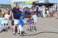 Viel Freude hatten die Kinder auch mit den Löschübungen mittels einer Kübelspritze. Hierfür hat die Wehr vor einigen Jahren ein Brandhaus, wo man die Türen und Fenster mit dem Wasserstrahl treffen und öffnen muss, als Geschenk von der befreundeten Borkumer Wehr erhalten. Hier hatten deren Alterskameraden das Haus gebaut.