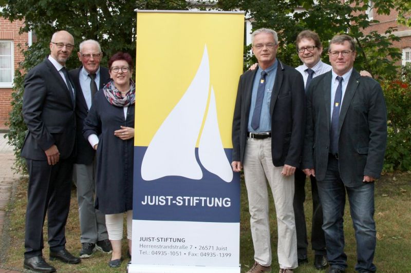 Unser Foto auf der Startseite zeigt den derzeitigen Vorstand der Juist-Stiftung (v.l.n.r.) André Ebbighausen, Dieter Brübach, Inka Extra (Vorsitzende), Arne Janßen, Franz Tiemann und Georg Lang