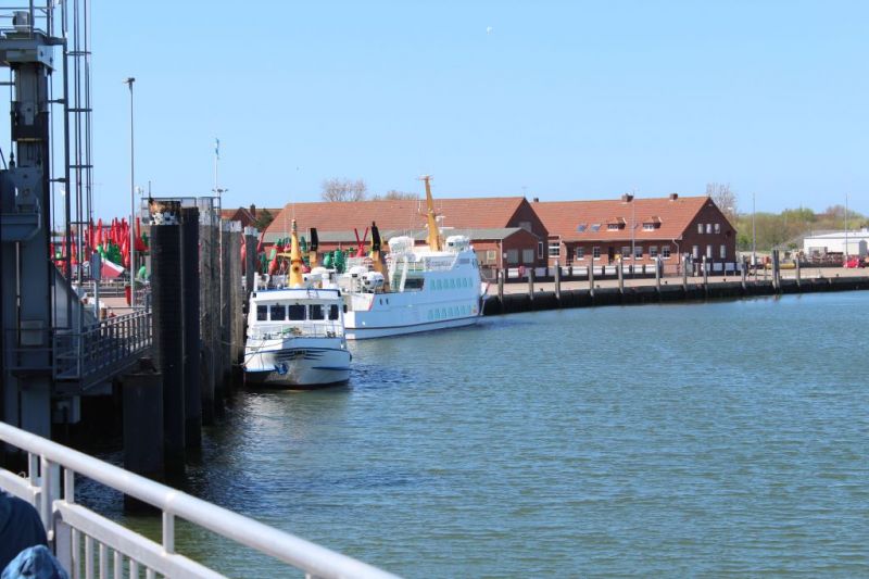 Auf dem Foto 9, welches von Bord eines Inseltaxis vom Wasser aus aufgenommen wurde, kann man das gesamte Schiff an der Norddeicher Mole sehen.