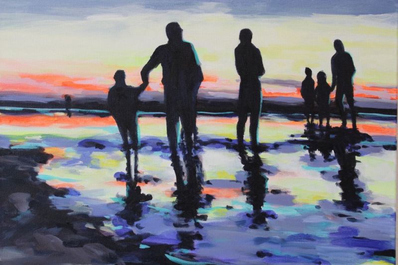 Erinnerungen, welche die Malerin bei ihren Besuchen auf Juist eingefangen hat. Der Mensch wird auf den Bildern in ein Bad aus Farbe eingebettet, dabei spielen Licht und Schatten eine entscheidende Rolle. Wer das Töwerland besucht und in seinem Herzen nachspürt wird sich ähnlich fühlen: eingebettet in die Gegebenheiten der Natur sei es im Wasser, am Strand oder im Watt, begleitet von Wind oder Sonne. Von einem Moment zum Anderen scheint die Szenerie in eine andere Farbe eingebettet zu sein. Kein Tag gleicht beim Blick in den Himmel dem Anderen. Der Strand mit seinen Farben wirkt wie ein Spiegel des Himmels.
