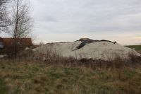 Foto 6: Vom Flugplatz geht es nun zurück in Richtung Ort, diesmal aber über die Umgehungsstraße unterhalb des Deiches. Dieser Haufen mit Schilf (Reet) wurde Anfang März aufgenommen und ist inzwischen entfernt worden. Das Reet wächst an dem Entwässerungsgraben, der sich in östliche Richtung neben dem Deichverteidigungsweg hinzieht. Seit vielen Jahren achtet der NLWKN (Nieders. Landesbetrieb für Wasserwirtschaft, Küsten- und Naturschutz) darauf, dieses Reet in den Wintermonaten zu entfernen, damit die Entwässerung funktioniert. Zum Frühjahr wächst dieses wieder und ist dann, wenn die Enten ihre Küken bekommen haben, so hoch, dass es einen wirksamen Sichtschutz für Möwen bieten, die ein großer Feind für keine Jungvögel sind.
