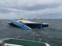 Der Skipper des Trimarans, der sich auf dem Weg von Spiekeroog nach Helgoland befand, hatte die deutsche Rettungsleitstelle See der DGzRS (international MRCC Bremen = Maritime Rescue Co-ordination Centre) am Samstag (23.Juli) kurz nach 11:00 Uhr noch über Funk alarmieren können. Ganz in der Nähe des Unglücksortes befand sich zu diesem Zeitpunkt das Fischereischutzboot "Seefalke", das sofort Hilfe anbot. Vor Ort brachte die "Seefalke" ein Beiboot aus, holte eine Seglerin von Bord des Havaristen und setzte ein eigenes Besatzungsmitglied zur Unterstützung des Skippers über.