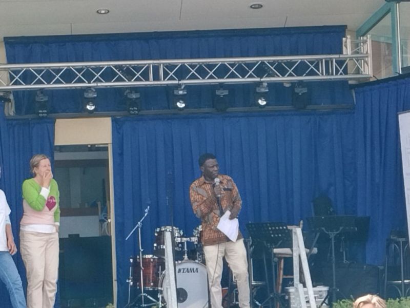 So gab es für die Kinder eine Hüpfburg, Schminken und Basteln, für das leibliche Wohl war gesorgt, neben dem von Okto-Opiro selbst gekochem ugandischen Originalgericht gab es Pizza, ein großes Angebot an selbstgebackenen Kuchen, warme und kalte Getränke.