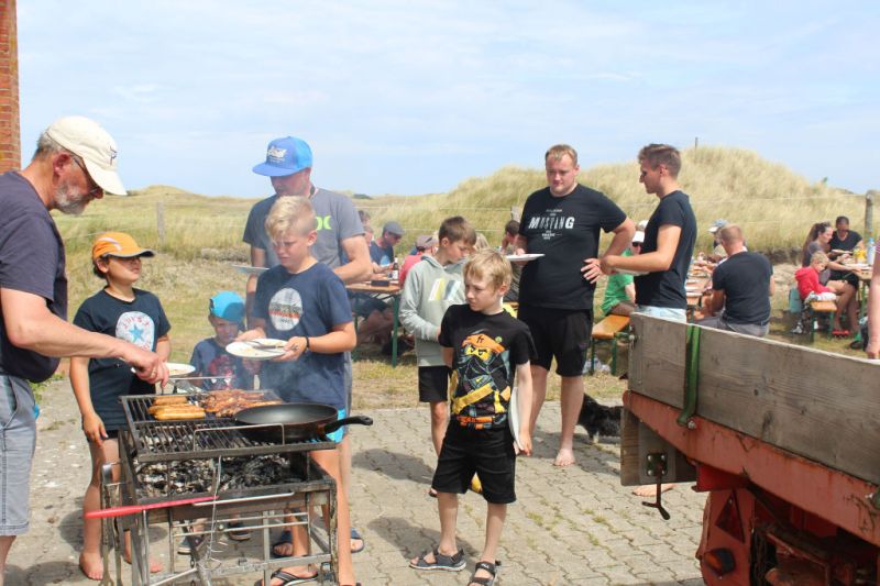 Der NLWKN hatte den alten Rettungsschuppen zur Verfügung gestellt, die Spedition Jochen Schwips einen Wagen, mit dem Festzeltgarnituren, Grill usw. auf dem Landweg dorthin kamen. Auch waren Porzellanteller und Metallbesteck aus dem Bootshaus mit auf den Anhänger verladen worden, denn auf Plastik wollen Segler und Motorbootfahrer, die auch zu den Naturfreunden und -schützern gehören, natürlich verzichten. Schlachtermeister Harry Giesenberg aus Emden-Larrelt, ebenfalls ein Wassersportler, brachte am Vorabend das Grillgut mit seinem Boot „Finnja“ von Greetsiel aus nach Juist.
