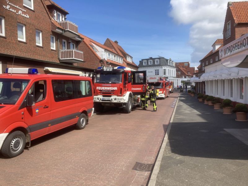Am Donnerstag (27. April 2023) kam es zu einem Einsatz der Juister Feuerwehr. Gegen 13:50 fuhr der Gemeindebrandmeister an einem Hotel in der Wilhelmstraße vorbei und vernahm massiven Brandgeruch. Bei der Begutachtung der umliegenden Gebäude konnte er eine Rauchentwicklung aus einem Fenster im Dach eines Hotels wahrnehmen. Umgehend wurde über die Leitstelle Ostfriesland Vollalarm für die Inselwehr ausgelöst. Das große Gebäude weckte Erinnerungen bei einigen Einsatzkräften, hier war es im Sommer 1995 zu einem Großbrand gekommen.